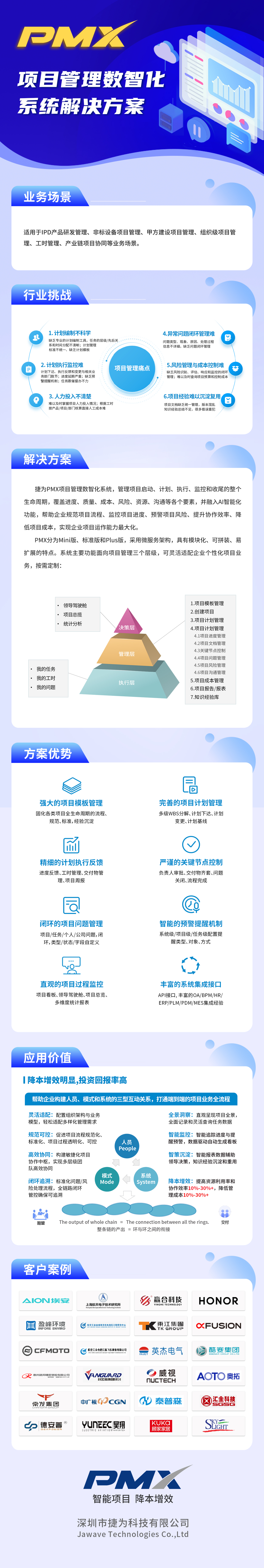 pmx v6.0项目管理数智化系统重磅来袭,帮您解决项目计划编制不科学、计划执行监控难、人力投入不清楚、异常问题闭环管理难、风险管理与成本控制难、知识经验难以沉淀复用等问题,从而降低管理成本20% ,提高资源利用率和协作效率20% 。欢迎垂询!