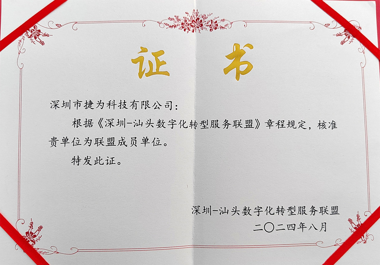 作为深-汕数字化转型服务联盟成员单位,捷为科技将充分发挥自身优势,与联盟内的其他企业共同探索数字化转型的新路径、新方法,为企业提供领先、优质的产品和专业、高效的服务,助力企业在数字化时代脱颖而出实现企业的数字化腾飞!