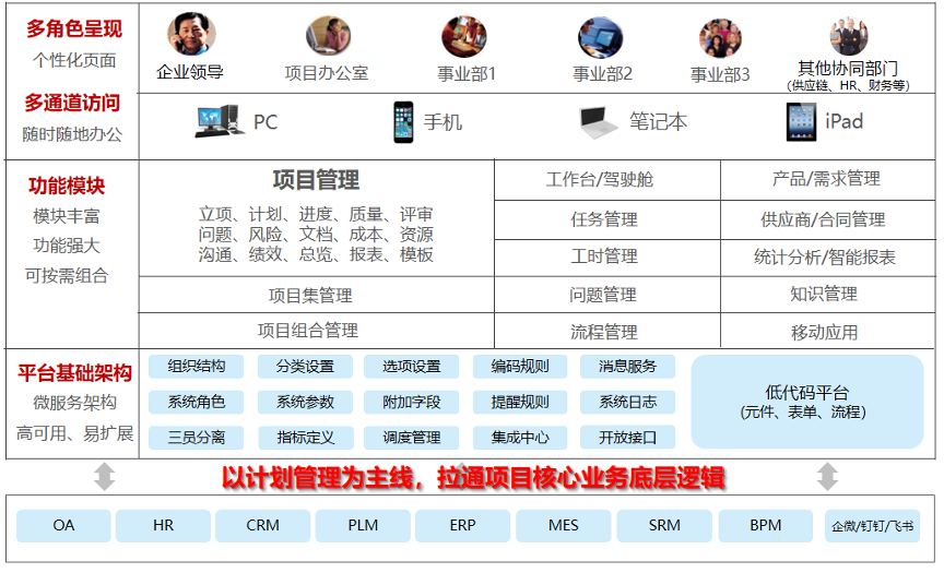 在新质生产力之下,捷为科技聚焦高端制造业提供领先的项目管理管理数智化系统平台,赋能企业转型升级、降本增效和高质量发展。捷为研发的imis-pmx集成项目管理系统是企业级的集成项目管理系统,管理项目启动、计划、执行、监控和收尾的整个生命周期,覆盖进度、质量、成本、资源、风险、沟通等项目管理的各个要素,并与企业的其他it系统进行系统集成和数据融合,为企业搭建规范化、精细化、可视化、智能化的项目集成管理信息平台。