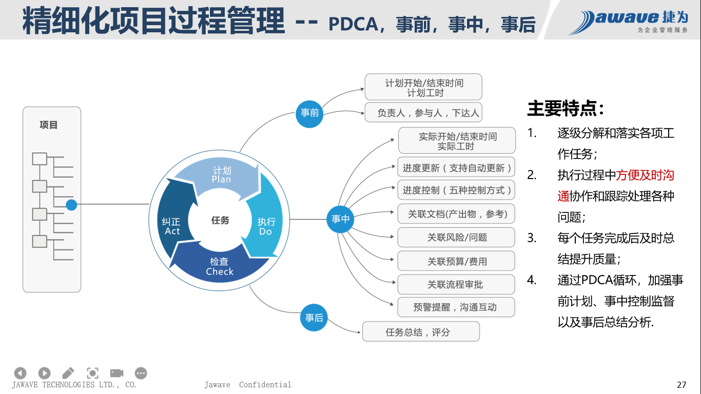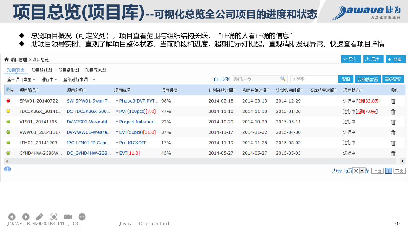 3、项目管理者难于及时了解项目状态和具体执行情况,各环节信息、文件的查询、统计困难;项目成员难于及时反馈工作进展,项目中的各种风险和问题能及时发现和解决。